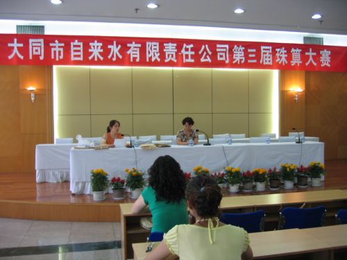 2007年7月18日上午,公司在三樓大會議室舉行珠算比賽,共計有50余人參加了比賽,經過緊張的比賽,評選出一等獎一名,二等獎兩名,三等獎四名,優(yōu)秀組織獎兩個。一等獎:陳彩鳳二等獎:葉 萍 付 華三等獎:楊育紅 李躍華 王中云 常燕蓉優(yōu)秀組織獎:北城營業(yè)處 材料供應處